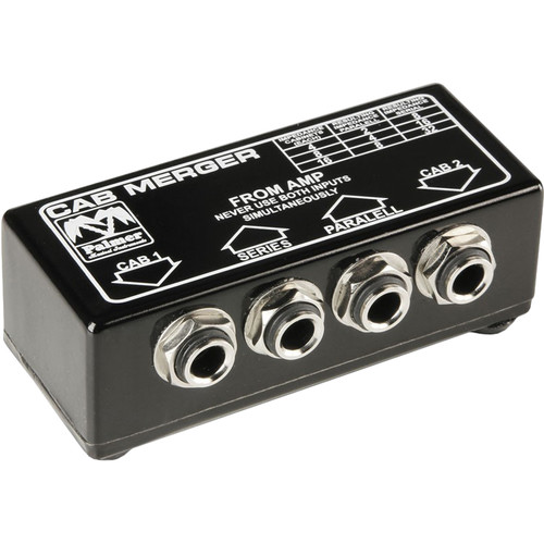 Palmer PCABM Passive Cabinet Manager — это небольшой блок, предназначенный для электрогитаристов, желающих использовать несколько кабинетов с одним выходом усилителя. Просто подключите один усилитель к последовательному или параллельному входному разъему и подключите кабели громкоговорителей 1/4" к каждому соответствующему кабинету. Обратите внимание: не используйте оба входных разъема одновременно.