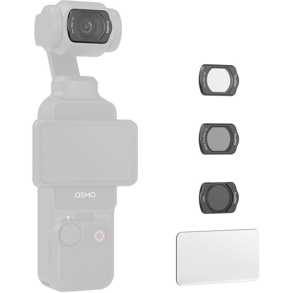 Смягчите изображения и устраните блики при съемке на камеру DJI Osmo Pocket 3 со стабилизатором с помощью этого набора фильтров черного диффузионного, белого диффузионного и CPL от SmallRig. В этот комплект входят черный диффузионный фильтр 1/2 дюйма, белый диффузионный фильтр 1/2 дюйма, круговой поляризационный фильтр (CPL) и защитная пленка из закаленного стекла для дисплея Osmo Pocket 3. Каждый фильтр имеет легкую алюминиевую оправу, которая крепится к объективу камеры с помощью магнитов.