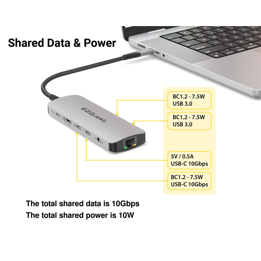 - Мультимедийный концентратор EZQuest USB-C 10-в-1 Gen 2