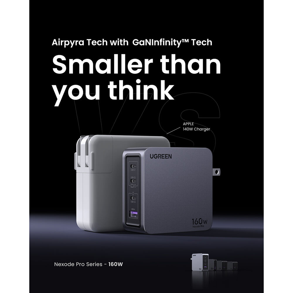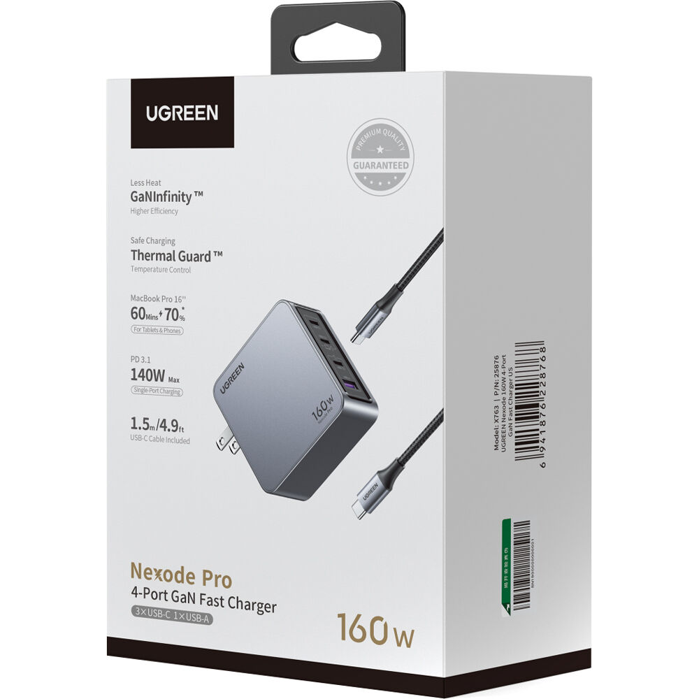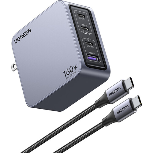 - Зарядное устройство UGREEN Nexode Pro мощностью 160 Вт с 4 портами GaN USB-C/USB-A