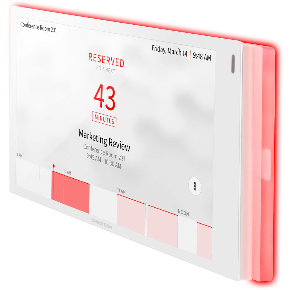 Белая световая панель доступности помещения Crestron TSW-770-LB для сенсорных экранов серии TSW-770 обеспечивает 180° визуальную индикацию доступности помещения в рамках комплексного решения по планированию помещений предприятия. TSW-770-LB легко устанавливается на заднюю часть сенсорного экрана и светится ярко-зеленым или красным цветом, указывая на состояние доступности помещения, с возможностями пользовательского смешивания цветов и программирования.