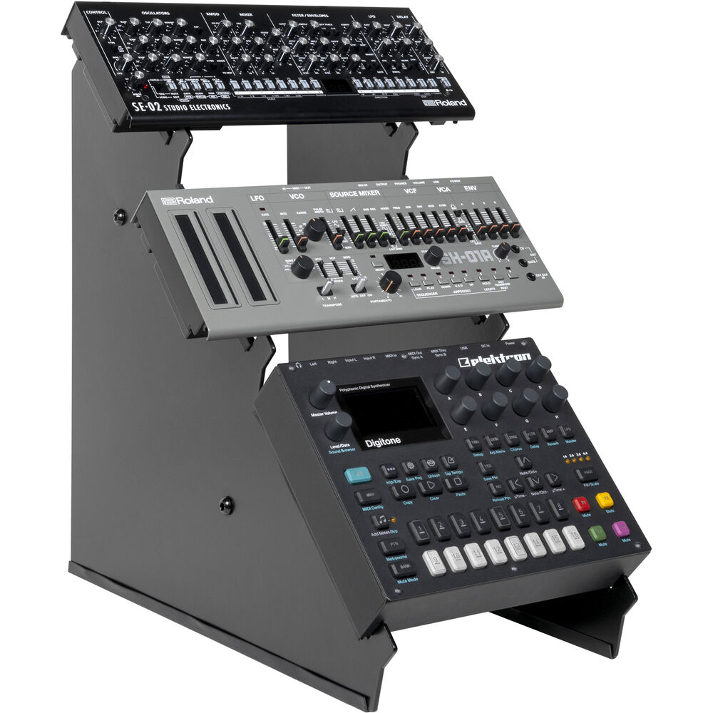 Держите свои синтезаторы, драм-машины и MIDI-контроллеры под рукой с помощью 3-ярусной настольной стойки для синтезаторов Headliner — настольной стойки для продакшена, которая вмещает три устройства и разработана для улучшения рабочего процесса и помогает вам оставаться организованным. Наклонная конструкция позволяет легко просматривать ЖК-экраны и дотягиваться до ручек/фейдеров.
