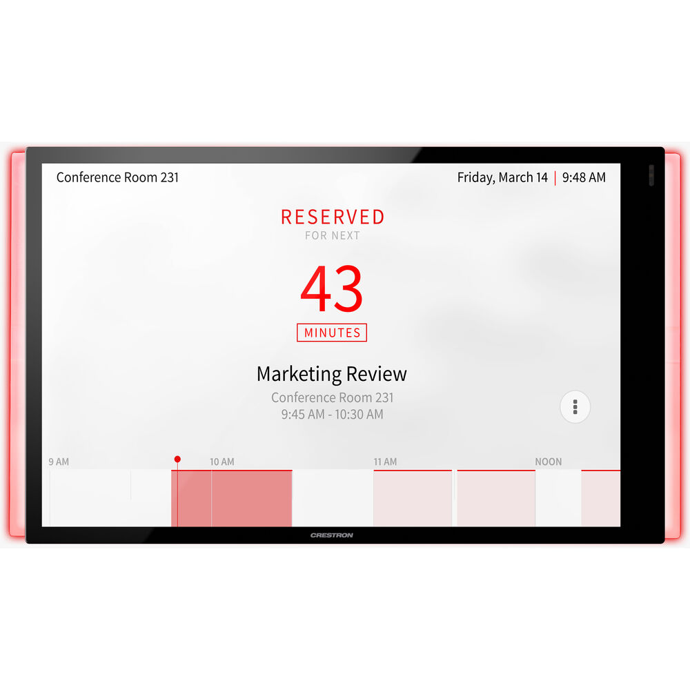 Черная световая панель доступности помещения Crestron TSW-1070-LB для сенсорных экранов серии TSW-1070 обеспечивает 180° визуальную индикацию доступности помещения в рамках комплексного решения по планированию помещений предприятия. TSW-1070-LB легко устанавливается на заднюю часть сенсорного экрана и светится ярко-зеленым или красным цветом, указывая на состояние доступности помещения, с возможностями пользовательского смешивания цветов и программирования.