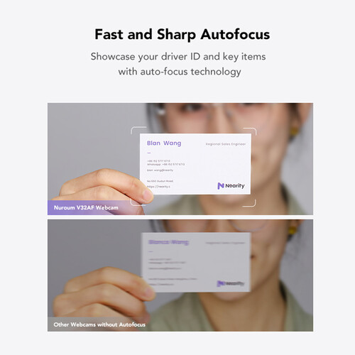 Будьте уверены, что ваши зрители или члены вашей команды слышат и видят вас в наилучшем качестве с веб-камерой V32AF 4K UHD с HDR от Nuroum. V32AF обеспечивает кристально чистое HDR-видео с помощью 4K 8-мегапиксельной UHD CMOS-матрицы, которая поддерживает угол обзора 90° и разрешение 4K при 30 кадрах в секунду или 1080p при 60 кадрах в секунду.