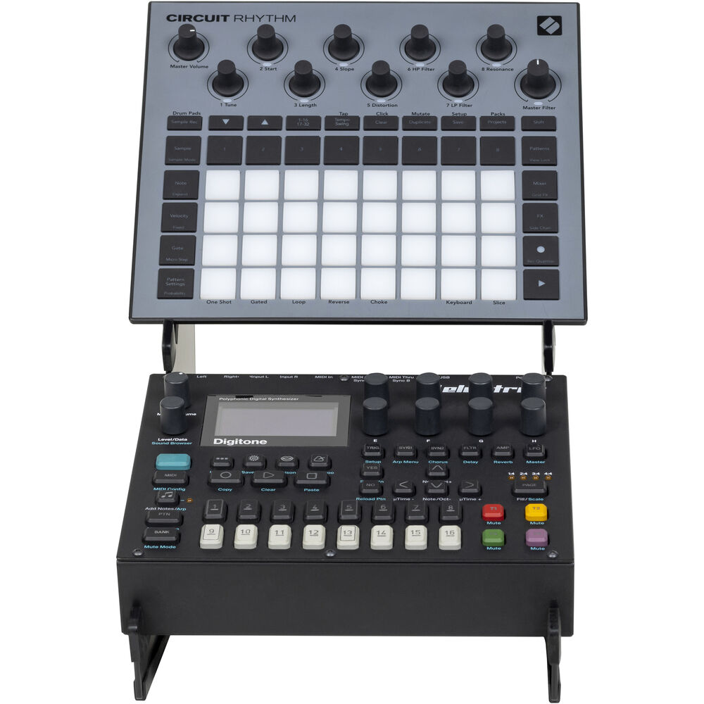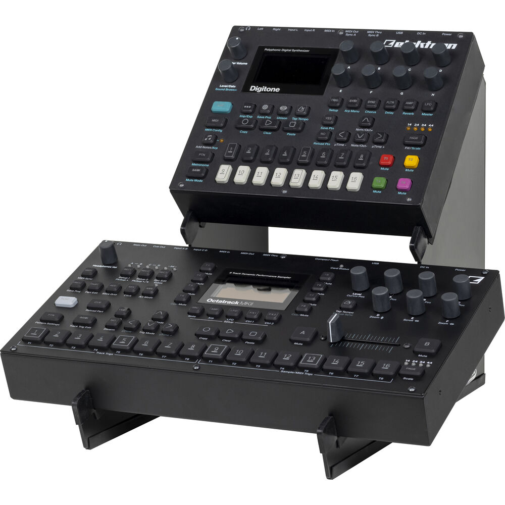 Держите свои синтезаторы, драм-машины и MIDI-контроллеры под рукой с помощью двухъярусной настольной стойки для синтезаторов Headliner — настольной стойки для продакшена, которая вмещает два устройства и разработана для улучшения рабочего процесса и помогает вам оставаться организованным. Наклонная конструкция позволяет легко просматривать ЖК-экраны и дотягиваться до ручек/фейдеров.