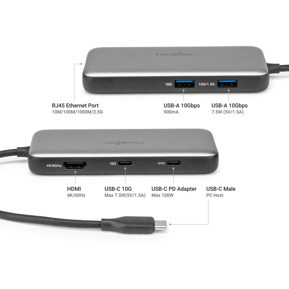 - Концентратор Rocstor 6-в-1 USB-C 3.2 Gen 2