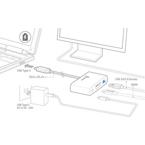 USB 3.0 Type-C - HDMI с подачей питания от j5create обеспечивает дополнительное подключение с вашего компьютера со скоростью передачи данных 5 Гбит/с и поддерживает 4K HDMI до 3840 x 2160 при частоте 30 Гц. Этот карманный многофункциональный адаптер позволяет добавить дополнительный монитор USB 3.0 HDMI, USB Type-A и устройство USB Type-C для зарядки. При подключении к источнику питания порт USB Type-C позволяет продолжать заряжать ваш ноутбук или смартфон. Более того, этот plug-and-play-концентратор совместим с системами Windows, Mac и Chrome.