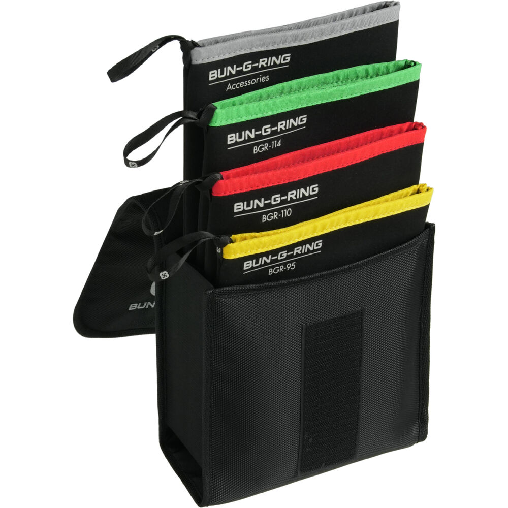 Стандартный тройной комплект Bun-G-Ring от IB/O Optics позволяет быстро установить квадратный или прямоугольный фильтр размером до 6,6 x 6,6 дюйма на три линзы разного диаметра. В комплект входят: Кольца 95, 100 и 114 мм с фиксаторами фильтра из эластичного шнура, переходные кольца 80, 87 и 104 мм, светонепроницаемые вставки, чехлы и сумка.