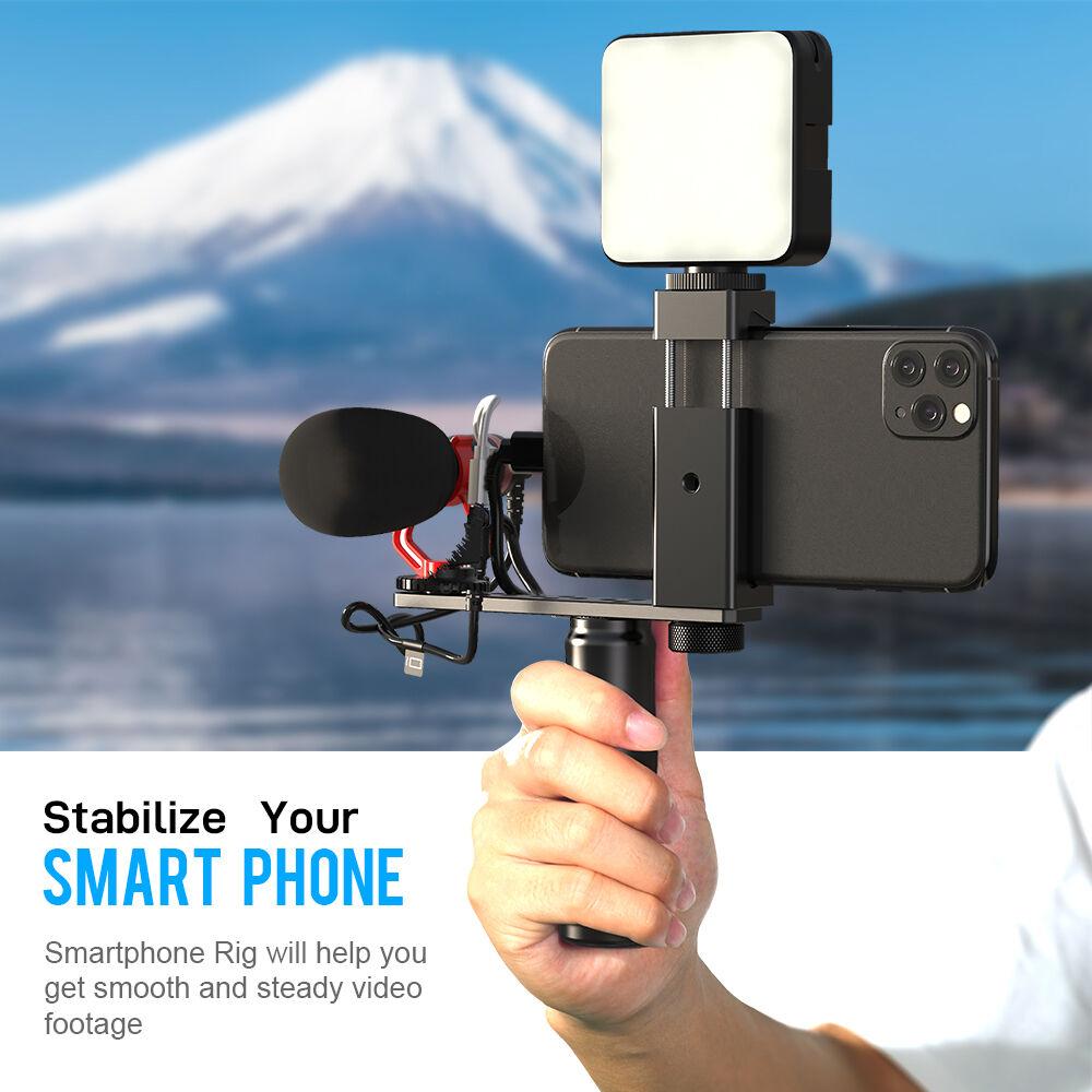 Разработанный для фотографов, видеографов, журналистов, путешественников и многих других, видеоустановка для смартфона от Apexel включает алюминиевую ручку, пластину, держатель для смартфона и ремешок на руку. Изготовленный из алюминиевого сплава, он может использоваться как крепление для штатива, рукоятка или подставка. Совместим с большинством смартфонов шириной от 2,4 до 3,3 дюйма, также имеет два крепления холодный башмак и одно резьбовое отверстие 1/4"-20 для крепления аксессуаров, таких как микрофон или светодиодная подсветка.
