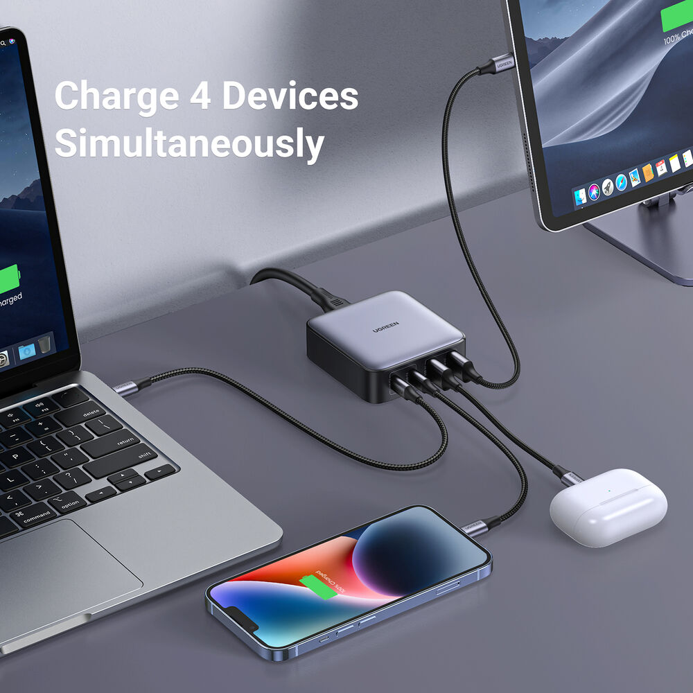 • Настольная зарядная станция UGREEN GaN с 4 портами USB мощностью 65 Вт