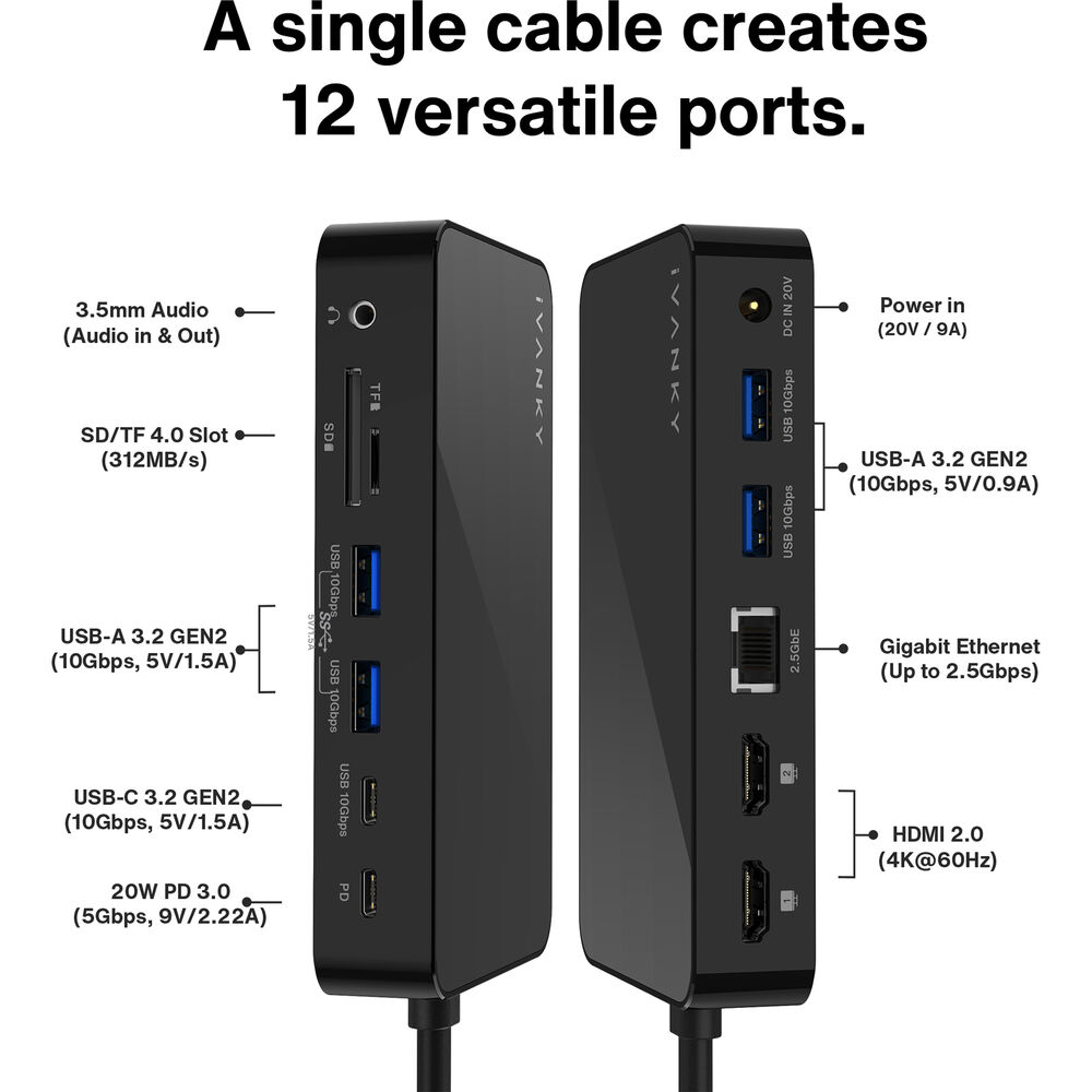 - Док-станция iVANKY 12-в-2 USB-C Pro