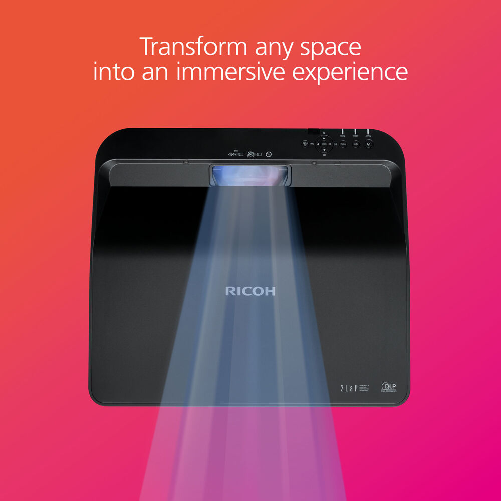 - Ricoh UHL3660 6500-люмен UHD 4K ультракороткофокусный лазерный DLP-проектор со сдвигом пикселей (черный)