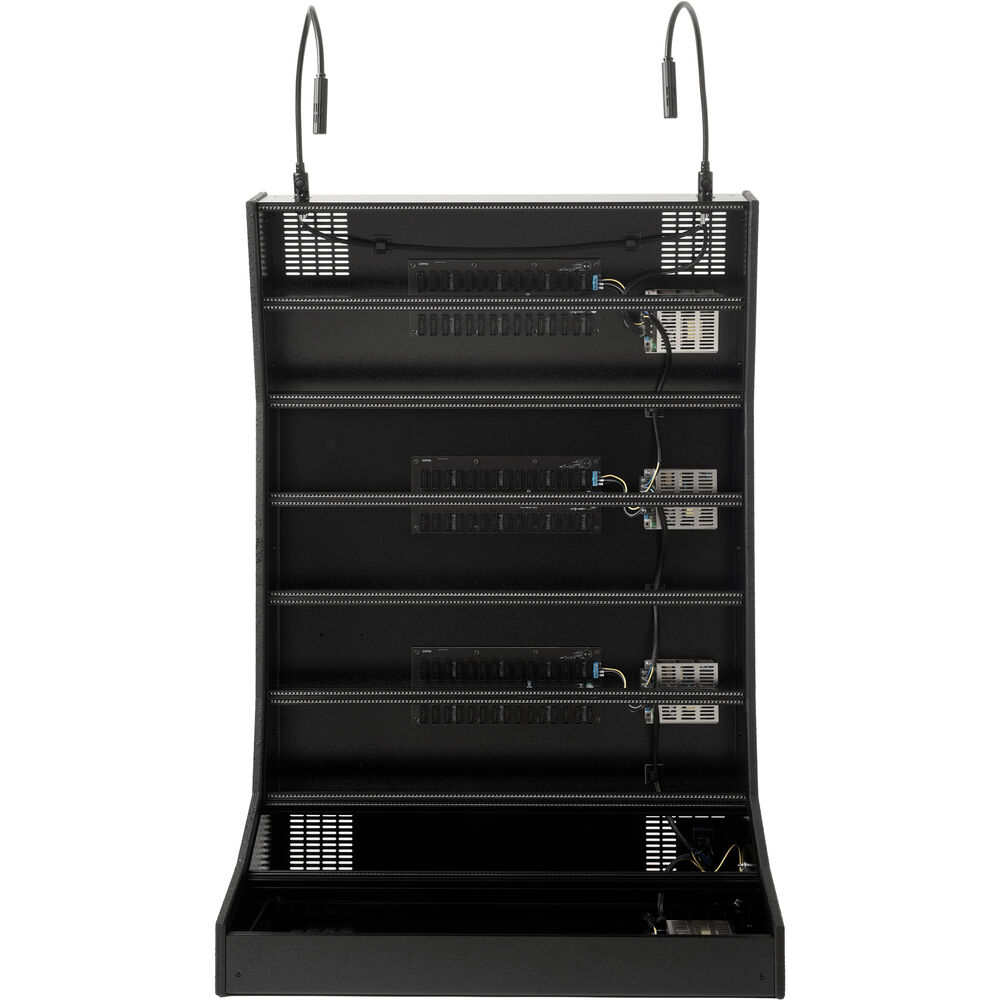 Размещайте свою постоянно растущую коллекцию модулей с помощью erica synths Megarack, идеального корпуса для Eurorack с восемью рядами 126 HP (всего 1008 HP). Корпус изготовлен из алюминия и оснащен элегантными боковыми панелями и специальными направляющими с резьбовыми вставками. Корпус обеспечивает 12 А при +12 В и 6 А при -12 В. Кроме того, он оснащен двумя 4-контактными разъемами XLR для подключения ламп на гибкой стойке (не входят в комплект). Корпуса производятся серийно и легко доступны.
