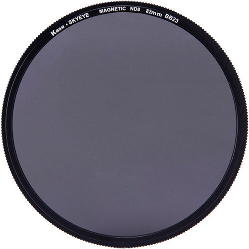 82-миллиметровый магнитный ND-фильтр Skyeye ND с адаптерным кольцом от Kase поглощает 3 ступени света для увеличения выдержки с целью увеличения размытия или для более широких настроек диафрагмы для более точного управления глубиной резкости при съемке в условиях очень яркого освещения. Входящее в комплект магнитное адаптерное кольцо для объектива позволяет использовать фильтр на объективе с 82-миллиметровой передней резьбой для фильтра и устанавливать или снимать его быстрее, чем обычные резьбовые фильтры.