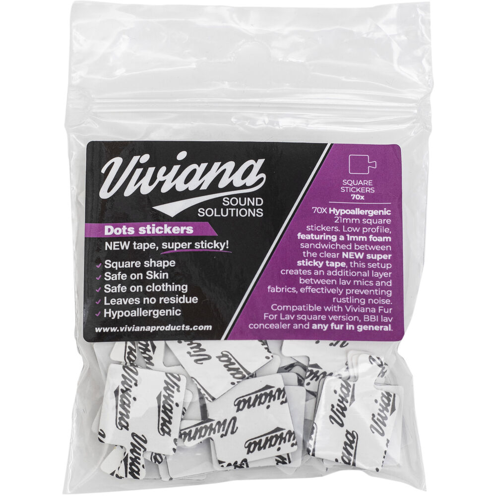 Эта упаковка из 70 квадратных наклеек Viviana Dots Premium разработана, чтобы помочь вам незаметно прикрепить петличный микрофон к объекту съемки, а также снизить шум ткани. Каждая наклейка имеет тонкий слой пены, зажатый между суперлипкой гипоаллергенной клейкой лентой. Гипоаллергенная лента безопасна для использования на коже и одежде и не оставляет следов, а слой пены изолирует микрофон от одежды и ткани, уменьшая шуршание и контактные шумы. Эта квадратная форма хорошо подходит для использования с лавандовыми консилерами Bubblebee Industries или чехлами Invisible Fur Outdoor. Наклейки также совместимы с Viviana Fur для петлички.