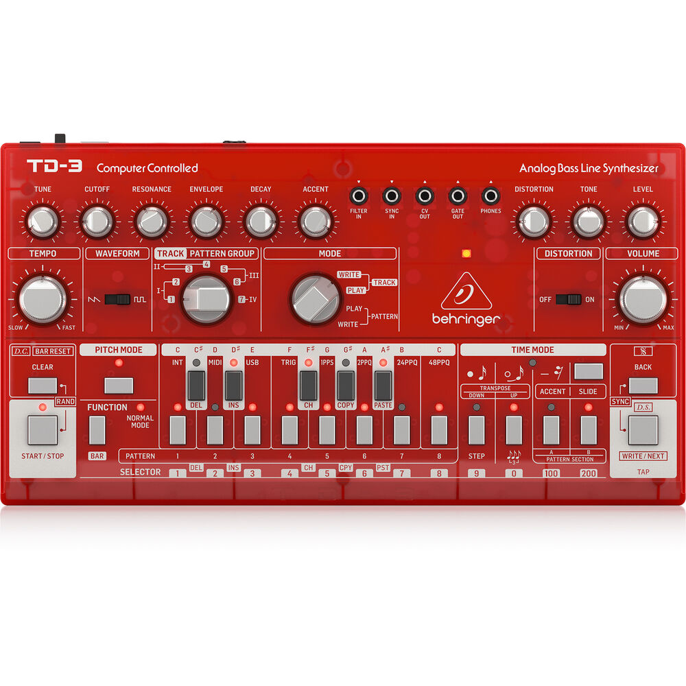 - Behringer TD-3-SB Аналоговый басовый синтезатор с 16-шаговым секвенсором (Strawberry)
