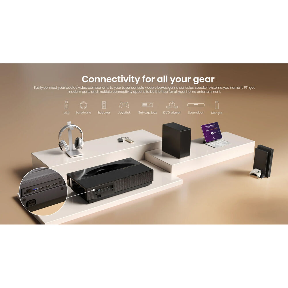 - Hisense PT1 2500-люмен UHD 4K ультракороткофокусный смарт-проектор с тремя лазерами DLP