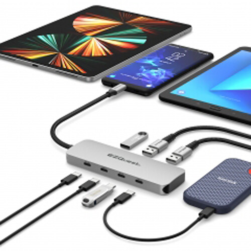 - Концентратор EZQuest USB 3.2 Gen 2 на 7 портов (серебристый)