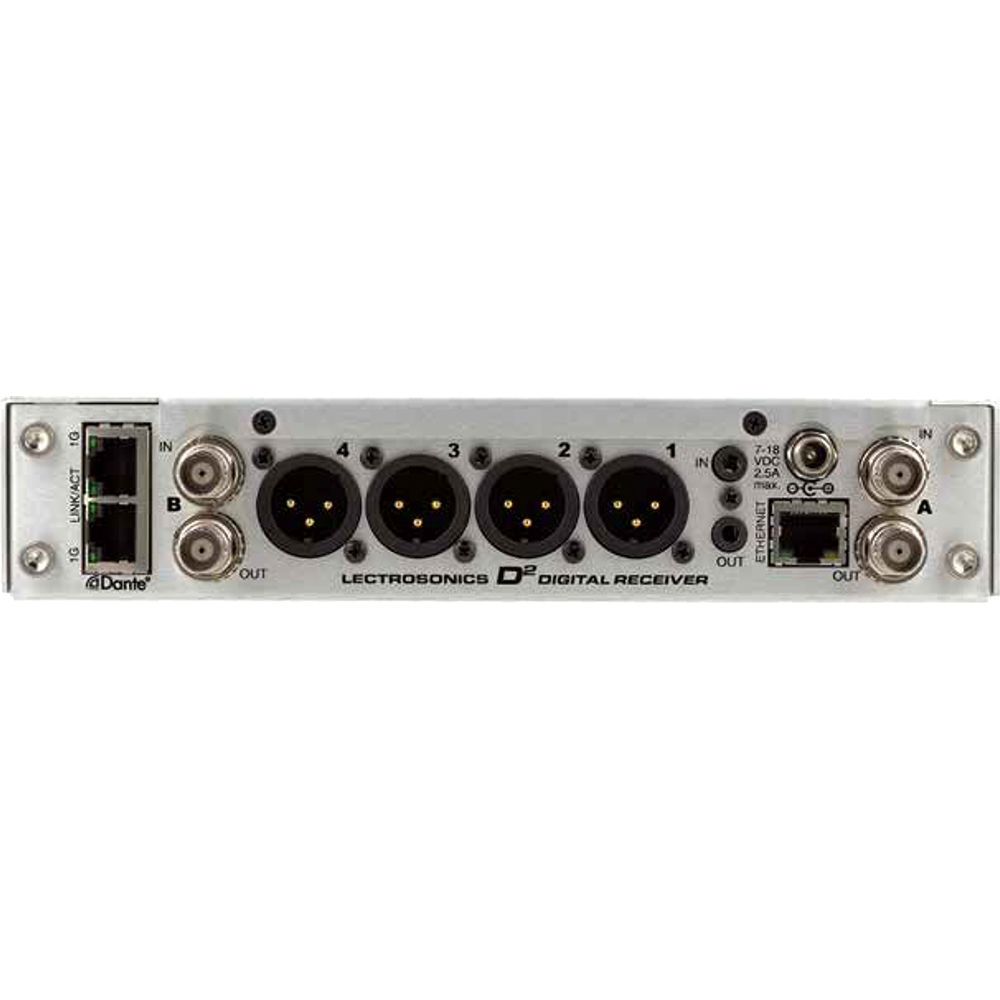- 4-канальный цифровой беспроводной приемник Lectrosonics DSQD с Dante (470–608 МГц)