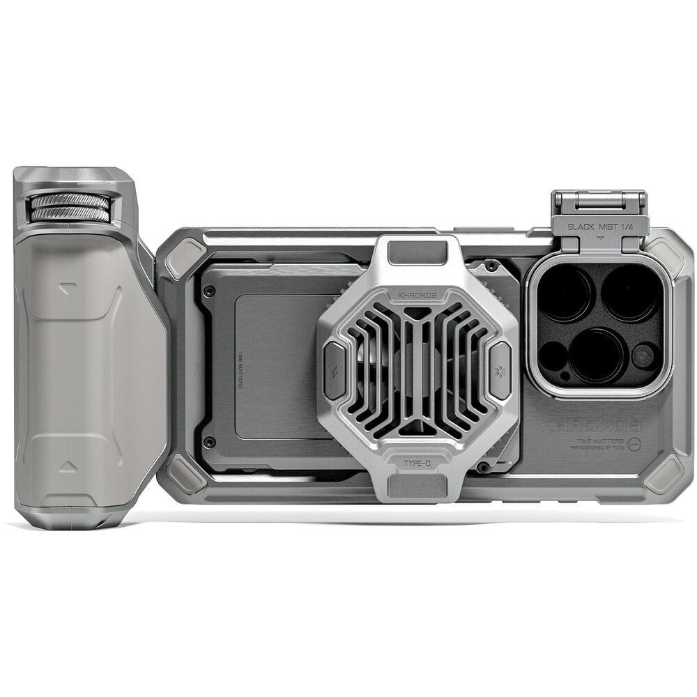Разработанный для мобильных кинооператоров, использующих iPhone 15 Pro, титаново-белый Расширенный комплект Khronos от Tilta включает в себя чехол Khronos для iPhone 15 Pro, систему охлаждения Khronos, ручку Khronos Focus PD, лоток для быстросъемных фильтров, фильтр ND 0,6, и фильтр ND 1.2. Этот комплект поможет вам быть лучше подготовленными к профессиональной видеосъемке, прямым трансляциям, ведению видеоблогов и многому другому.