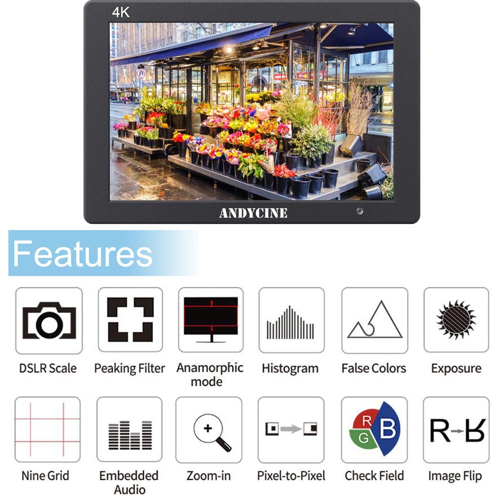 - ANDYCINE T7 7-дюймовый 4K HDMI-вход/выход, накамерный монитор 1920 x 1200