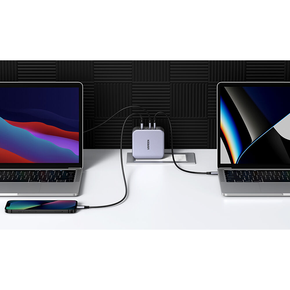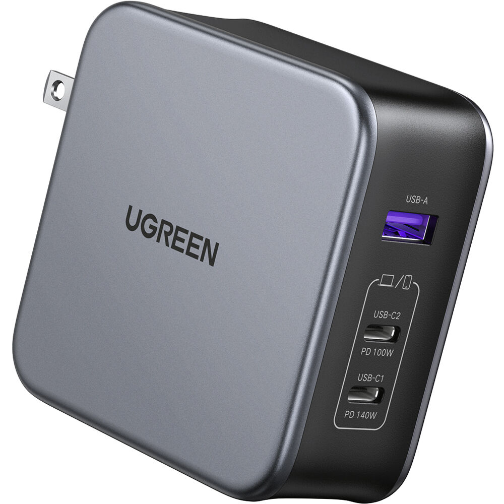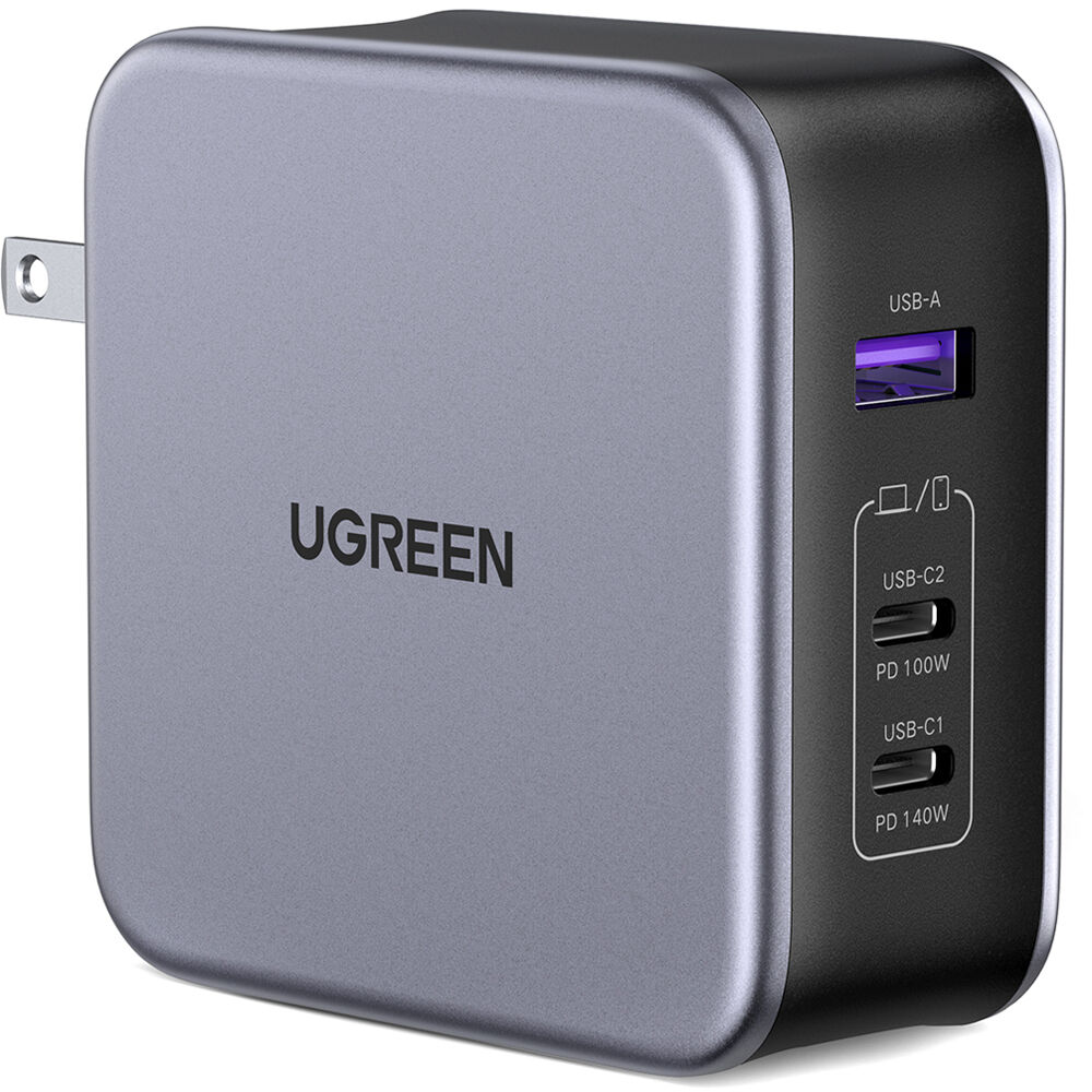 - Сетевое зарядное устройство UGREEN Nexode 140 Вт GaN с тремя портами USB