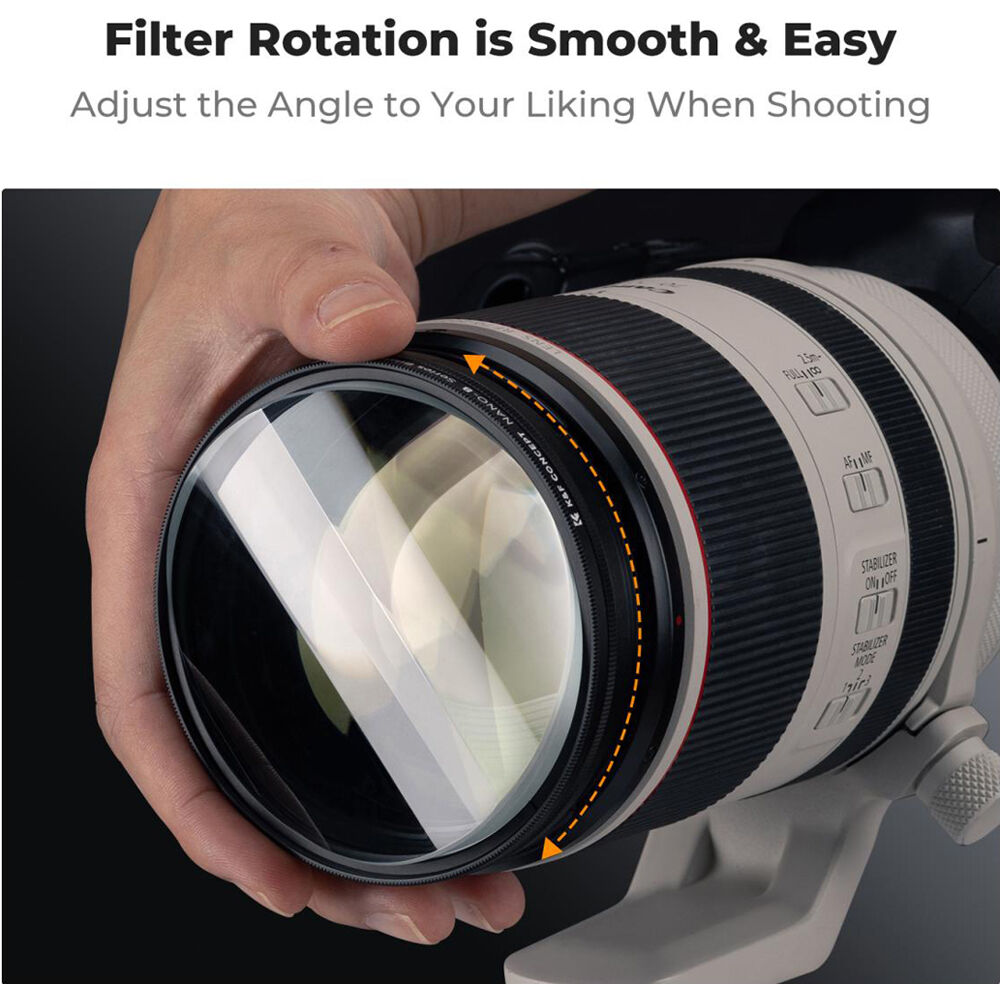 K&F Concept — это фильтр со спецэффектами, который преломляет и искривляет свет для создания художественного эффекта размытия с мощным ощущением движения. Вращающаяся оправа фильтра помогает вам захватывать множество динамичных и абстрактных изображений. Обработанная пескоструйным аппаратом и анодированная алюминиевая оправа предотвращает попадание постороннего света в объектив. Изготовленный из оптического стекла K9, этот фильтр обеспечивает обильное пропускание света, обеспечивая четкие и реалистичные цвета изображения. Он поставляется с тремя салфетками из микрофибры и футляром для хранения.