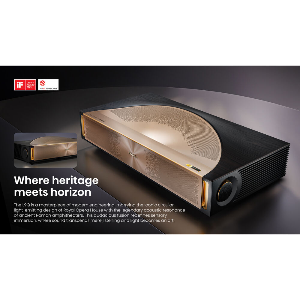 Hisense L9Q 5000-Lumen UHD Умный 4K-проектор с ультракороткофокусным тройным лазером DLP. В L9Q используется фирменная технология Hisense LPU с тройным лазерным световым процессором, обеспечивающая невероятную точность и яркость цветопередачи, охватывающую 110% цветового пространства BT.2020. В сочетании со встроенной звуковой системой Devialet Opéra de Paris и ОС Google TV, L9Q обеспечивает непревзойденные возможности для развлечений.