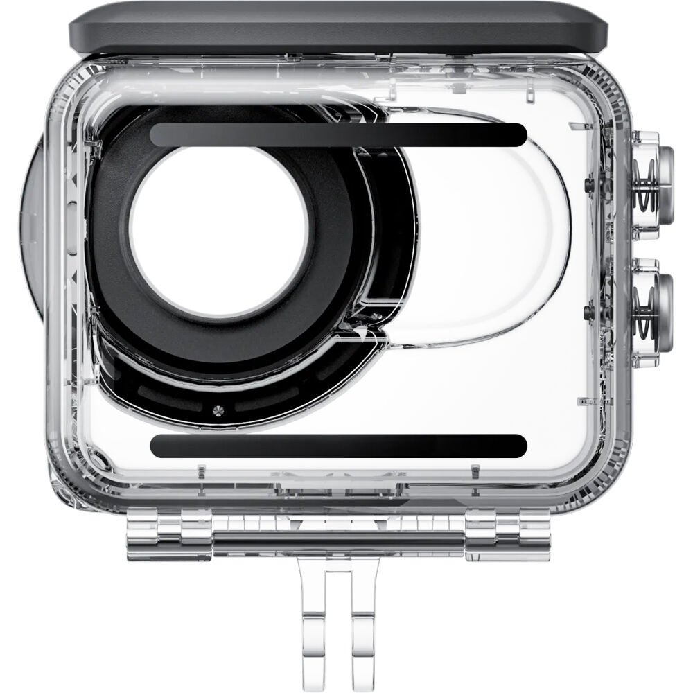 Insta360. Бокс выдерживает погружение на глубину до 197 футов и оснащен застежкой-фиксатором для дополнительной безопасности. Крепление с двумя зубцами на основании позволяет закрепить камеру на селфи-палке, а также вы можете использовать прилагаемый адаптер с 3 зубцов на 1/4"-20 для расширения крепления. Совместимость. Ваши изображения остаются высокого качества благодаря гидрофобному и маслостойкому оптическому стеклу. В комплект входят противотуманные вставки для дополнительной защиты обзора, а противоскользящие кольца обеспечивают надежное крепление к штативу.