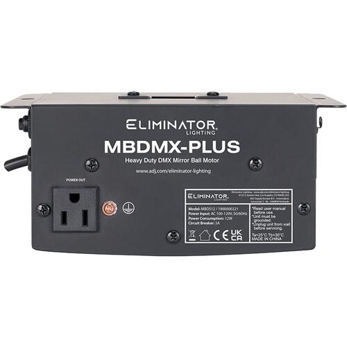 Eliminator Lighting MBDMX-PLUS, сверхпрочного мотора для зеркального шара с DMX. Синхронизируйте скорость и направление вращения до четырех моторов. Кроме того, MBDMX-PLUS включает в себя две встроенные розетки переменного тока с управлением по DMX, что позволяет управлять прожекторами с помощью DMX. Мотор может работать автономно, Режимы основной/дополнительный и DMX. В комплект входит ИК-кабель для использования с дополнительным ИК-пультом дистанционного управления UC.