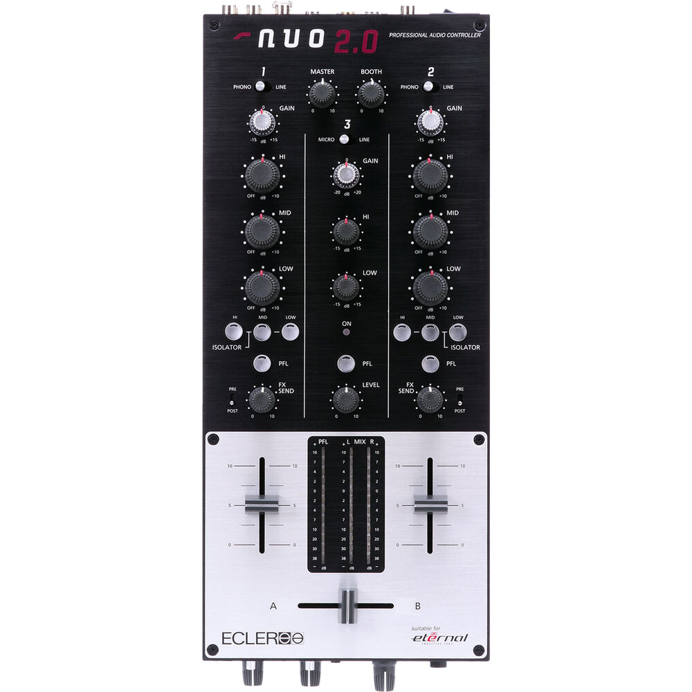 Двухканальный DJ-микшер Ecler NUO 2.0 обеспечивает профессиональное качество звука и надежные компоненты в тонком корпусе для мобильных диджеев, заботящихся о пространстве, как дома, так и в ночном клубе. Каналы 1 и 2 оснащены стереовходами RCA line и стереовходами Phono, а канал 3 предлагает стереовход RCA и балансный микрофонный вход 1/4" с фантомным питанием. Выходная секция оснащена балансными выходами XLR и RCA, а также отдельным выходом для записи и посылом/возвратом эффектов на внешние процессоры. Мощный 3-полосный эквалайзер обеспечивает полное срезание частот, а также имеет регуляторы кривых для каналов и кроссфейдеров.