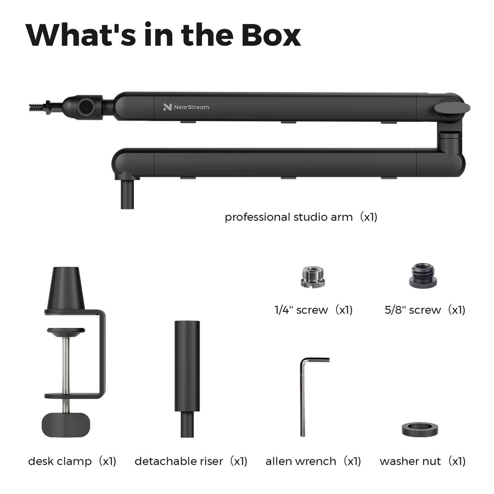 Штанга микрофона NearStream ST20 — это штанга микрофона с двумя шарнирными соединениями Рукоятки длиной 13,78 дюйма и прочный, надежный зажим для крепления к столешницам толщиной до 2,76 дюйма. Благодаря вращению основания на 360° и вращению рукояток на 180° эту штангу легко отрегулировать для идеальной посадки.