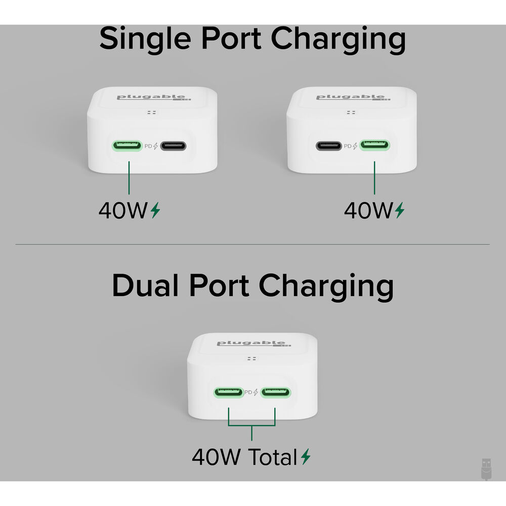 Plugable. Это зарядное устройство белого цвета отличается низкопрофильной конструкцией, которая выступает всего на 0,9 дюйма из розетки, что делает его идеальным для использования за мебелью дома. После подключения вы получаете два порта USB-C для одновременной зарядки до двух устройств. Каждый порт может выдавать до 40 Вт по отдельности, или оба порта могут совместно использовать эту мощность. Благодаря встроенной защите от перенапряжения, перегрузки по току и короткого замыкания, все подключенные устройства будут безопасно получать питание.