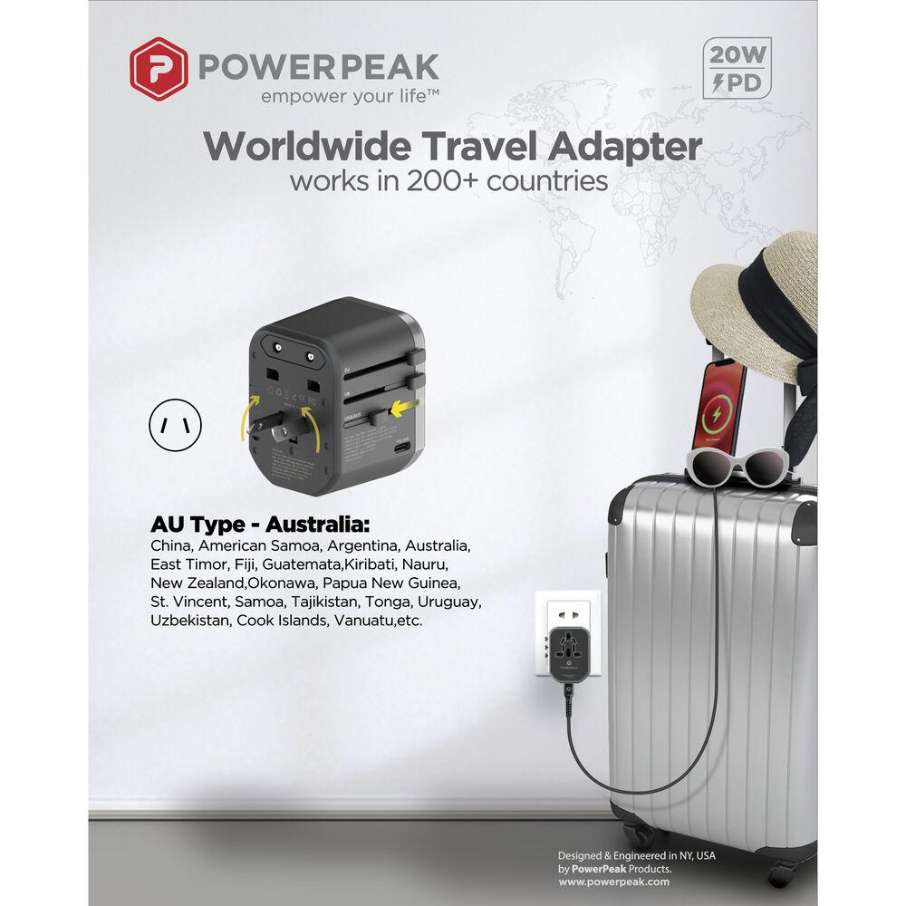 - Универсальный адаптер питания PowerPeak с портами USB-C/USB-A