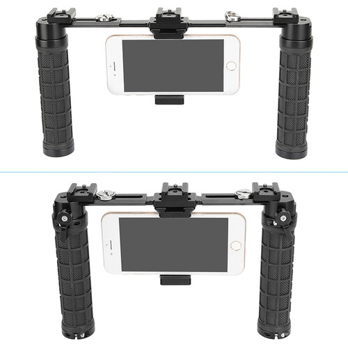 CAMVATE. Установки оснащены двумя резиновыми рукоятками в стиле НАТО, которые обеспечивают плавное движение и позволяют легко снимать под экстремальными углами, делать снимки с нажатой кнопкой и многое другое. Быстросъемные рычаги позволяют сдвигать рукоятки внутрь и наружу для максимального комфорта, а несколько точек крепления обеспечивают возможность прикрепить его к дополнительному штативу или добавить дополнительные аксессуары для дальнейшего улучшения процесса создания контента.