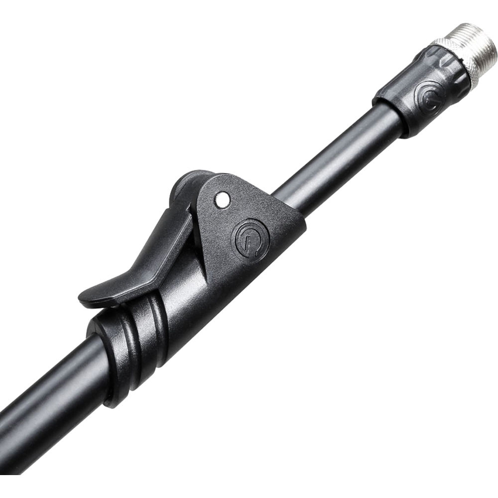 микрофонной стойки Gravity Stands MS 2322 B. Стойка имеет толстостенную трубку, порошковое покрытие и максимальную высоту 168 см. Прочное круглое основание из чугуна оснащено резиновым дном для обеспечения звукоизоляции и защиты поверхностей. Втулка стрелы микрофона оснащена точной регулировкой наклона и положения телескопической штанги в двух точках. Быстроразъемное крепление позволяет выдвигать штангу микрофона на максимальную длину 34,6 дюйма (81 см), что облегчает точное размещение микрофона.