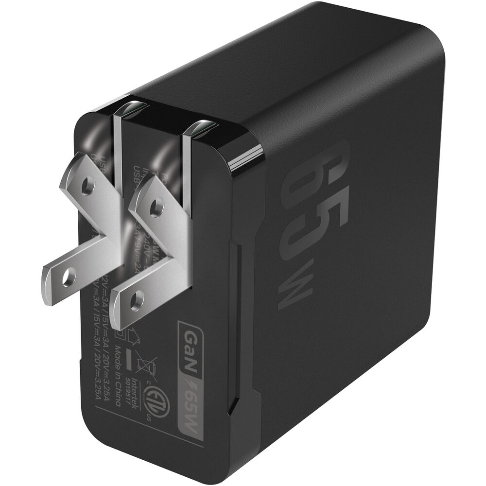 - Сетевое зарядное устройство PowerPeak 65 Вт GaN с тремя портами USB и кабелем
