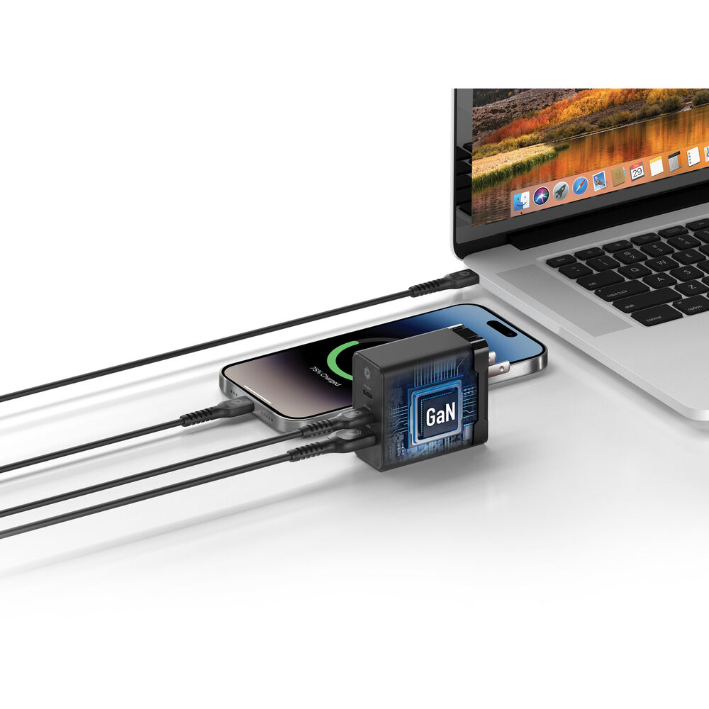 65-ваттное зарядное устройство USB GaN с 3 портами и кабелем от