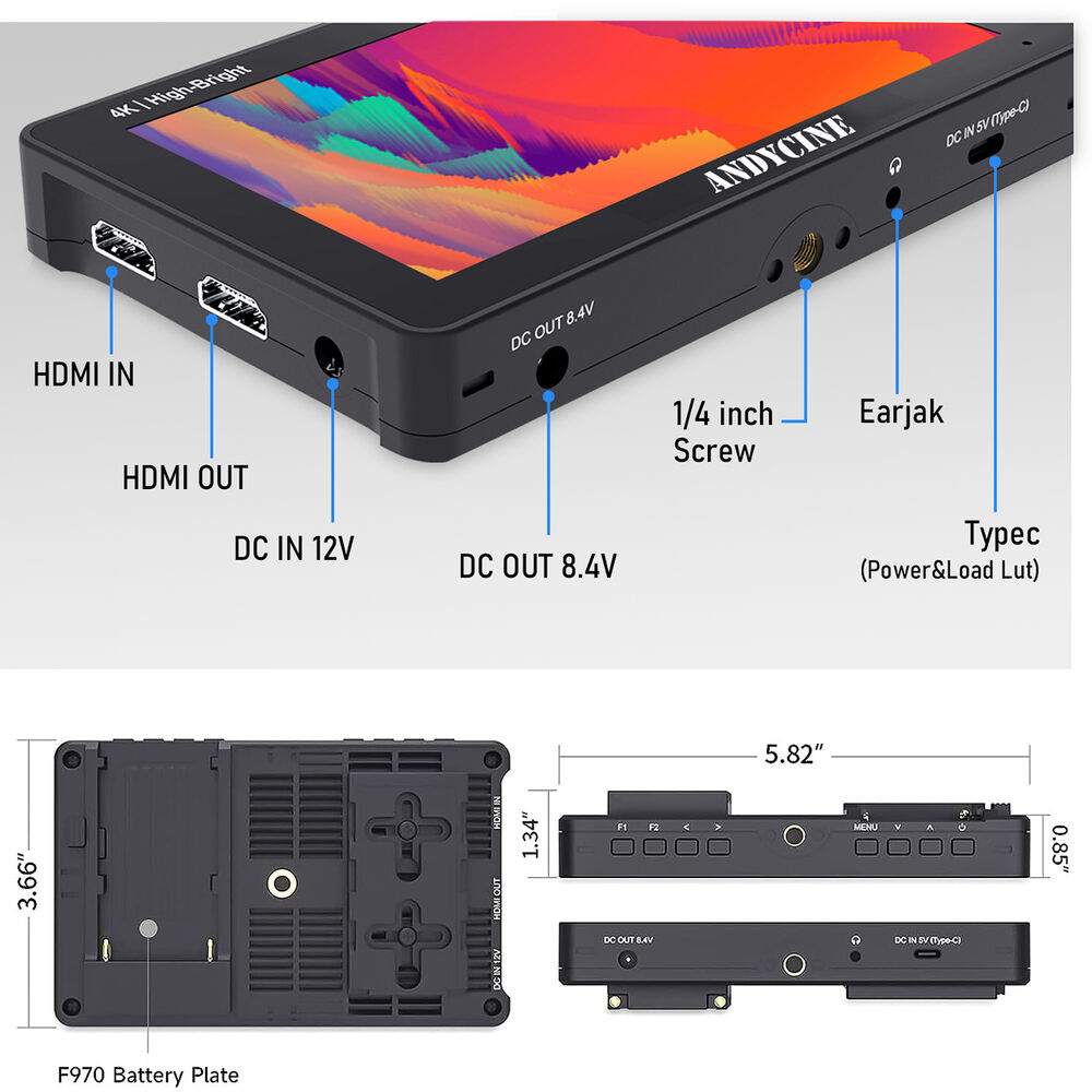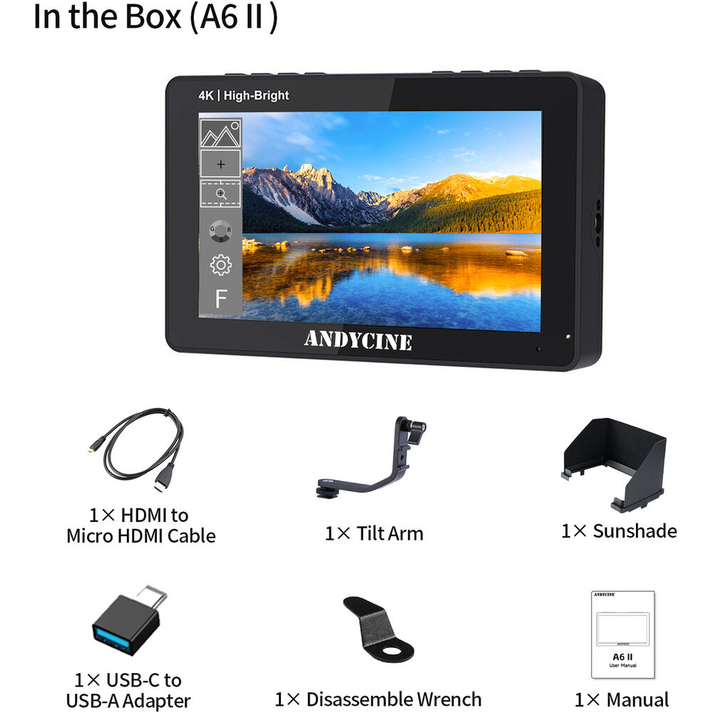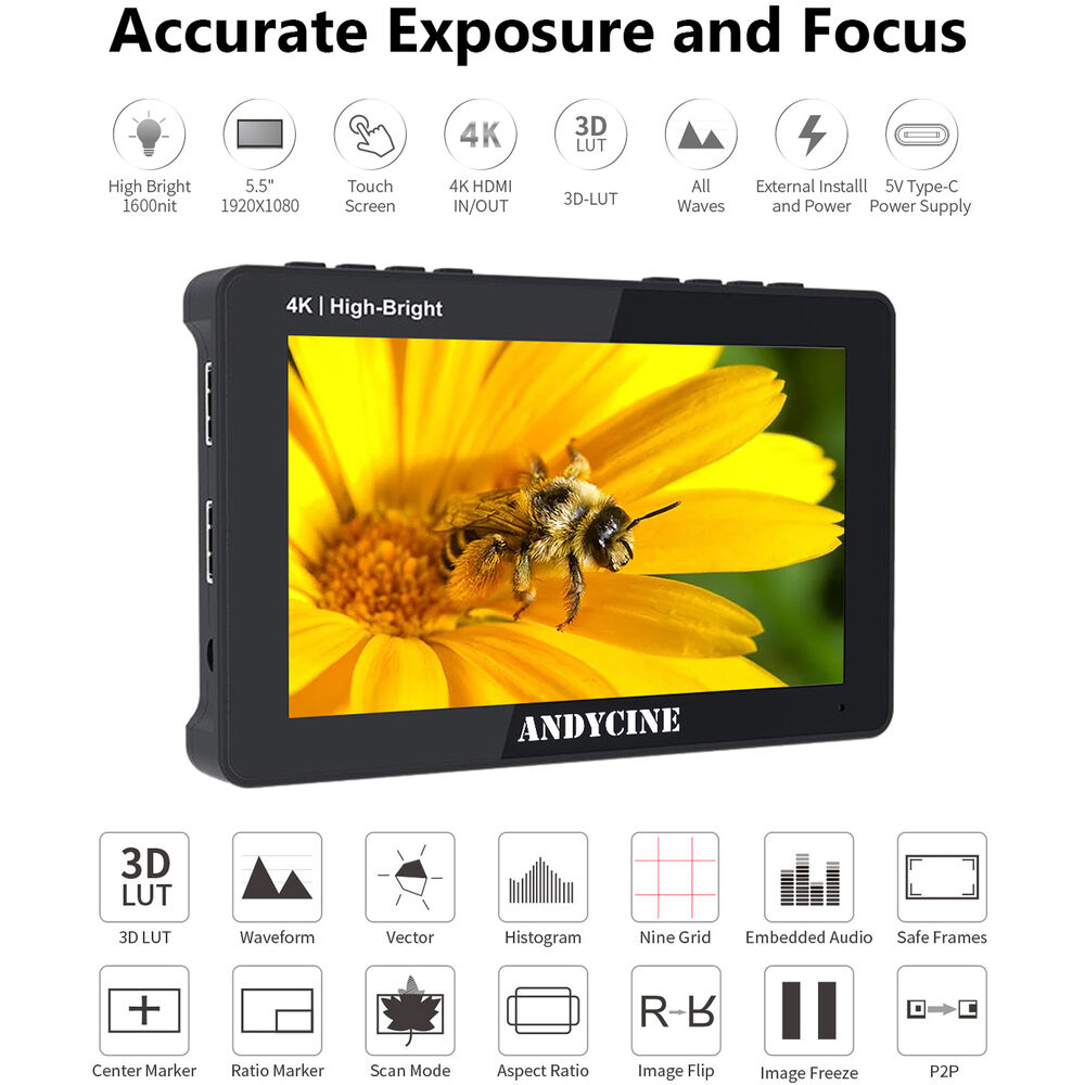 - ANDYCINE A6 II 5,5-дюймовый сенсорный HDMI-монитор высокой яркости 4K