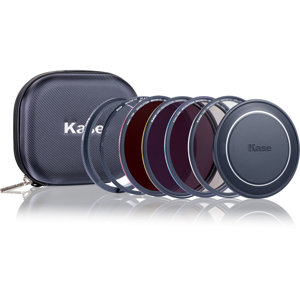 Kase предназначен для объективов с диаметром фильтра 77 мм. В этот набор входят круговой поляризатор, 3-ступенчатый фильтр, 6-ступенчатый фильтр и 10-ступенчатый фильтр. В комплект входят ввинчиваемое адаптерное кольцо и встроенное магнитное адаптерное кольцо, а также передняя крышка объектива и мешочек для фильтров. Каждый фильтр изготовлен из ударопрочного оптического стекла KW и имеет цветовую кодировку для легкой идентификации. Магнитное адаптерное кольцо устанавливается на объектив, не увеличивая его толщину, что позволяет устанавливать традиционные адаптерные кольца и крышки объективов без резьбовых адаптерных колец. В неиспользуемом состоянии комплект можно безопасно хранить в прилагаемом футляре для фильтров.