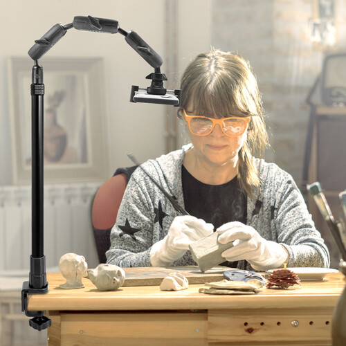 Arkon — это прочное крепление для телефона и камеры, которое крепится к плоской поверхности шириной от 1,5 до 3,25 дюйма. После установки вы сможете использовать подставку, которая выдвигается от 17 до 29 дюймов (48,5 см) для съемки видео с видом сверху. Однако перспективу можно отрегулировать для съемки видео с уровня глаз. Благодаря входящему в комплект адаптеру для камеры, это крепление можно использовать с пико-проекторами и камерами MEVO. Благодаря поддержке... Это крепление разработано для тех, кто снимает видео или создает демонстрационные видеоролики, например, для мастеров маникюра, столяров, гончаров, пекарей, штамповщиков и других. Оно подходит для устройств весом до 2 фунтов (900 г) и шириной до 3,9 дюйма (9,7 см).