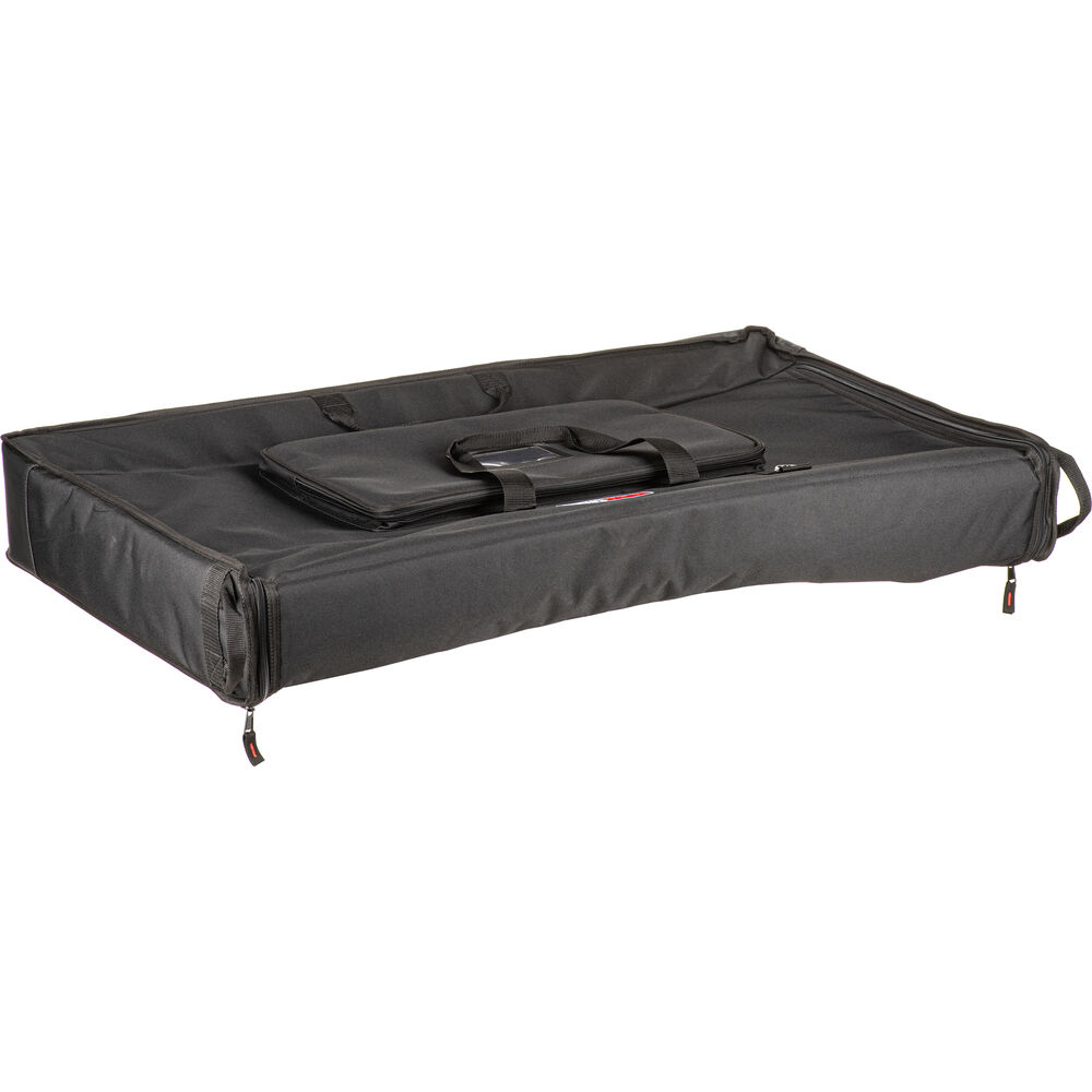 Gator Cases. Для надежной защиты сумка имеет прочную нейлоновую конструкцию, 25-миллиметровую прокладку из вспененного полиэтилена со всех сторон и усиленную полиэтиленом переднюю часть. Внутри трикотажная подкладка, предотвращающая царапины. Двойные молнии облегчают загрузку. Сумку можно носить за нейлоновые ручки или на регулируемом съемном плечевом ремне. В наружном кармане можно хранить сопутствующие аксессуары. Также имеется карман с прозрачным виниловым окошком для визитки.