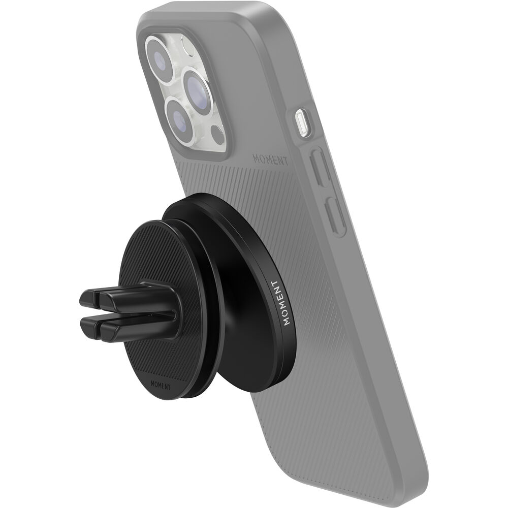 Moment спроектировано так, чтобы обеспечить надежное соединение для совместимого iPhone, сохраняя его в безопасности во время вождения. Магниты достаточно сильны, чтобы использовать его как с чехлом, совместимым с MagSafe, так и без него. Накладка на захват обеспечивает вашему телефону дополнительную прочность захвата и защищает его покрытие. Эта регулируемая версия крепления выше стандартной версии, чтобы подключаться к более глубоким прорезным вентиляционным отверстиям с помощью прорезиненного крепления Press-Fit. Он также оснащен вращающейся на 23° шаровой головкой, что позволяет вам регулировать угол наклона iPhone по мере необходимости.