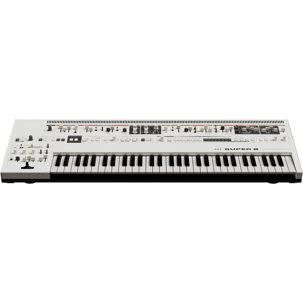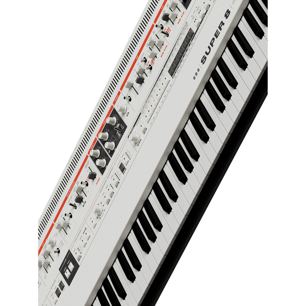 UDO Super 8 является следующим поколением в серии Super, которое по размеру и Мощь. В основе Super 8 лежат две независимые бинауральные аналогово-гибридные цепи синтезатора, использующие запатентованную и проверенную технологию синтеза UDO. Инструмент может похвастаться 16-голосной полифонией и двумя уникальными тембрами, каждый из которых имеет собственную независимую цепочку эффектов. Как и в его старшем собрате, Super Gemini, голоса и тембральные слои можно разделять, комбинировать и секвенсировать одним нажатием кнопки.