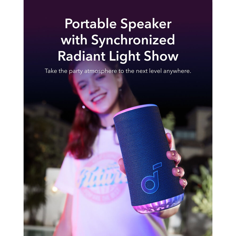 Soundcore by Anker. Портативную колонку можно разместить в любом месте, чтобы наслаждаться потоковой музыкой на 360° по Bluetooth с вашего мобильного устройства. Во время воспроизведения музыки встроенная разноцветная подсветка пульсирует в такт музыке. Glow оснащен верхним и нижним кольцами светодиодов, которыми можно управлять через приложение Soundcore. Glow может работать до 18 часов и станет отличным дополнением к бассейну благодаря своей водо- и пылезащитной конструкции. Его даже можно плавать в бассейне, если он попадет в воду!