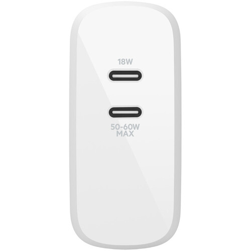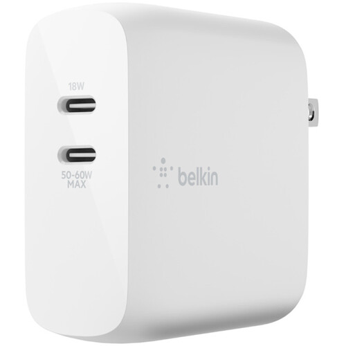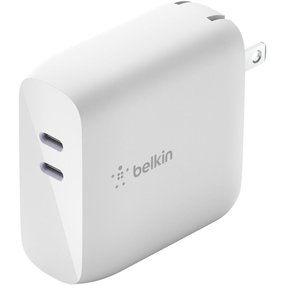 - Сетевое зарядное устройство Belkin Boost Charge 68 Вт с двумя USB-портами Type-C и GaN-элементами, с кабелем