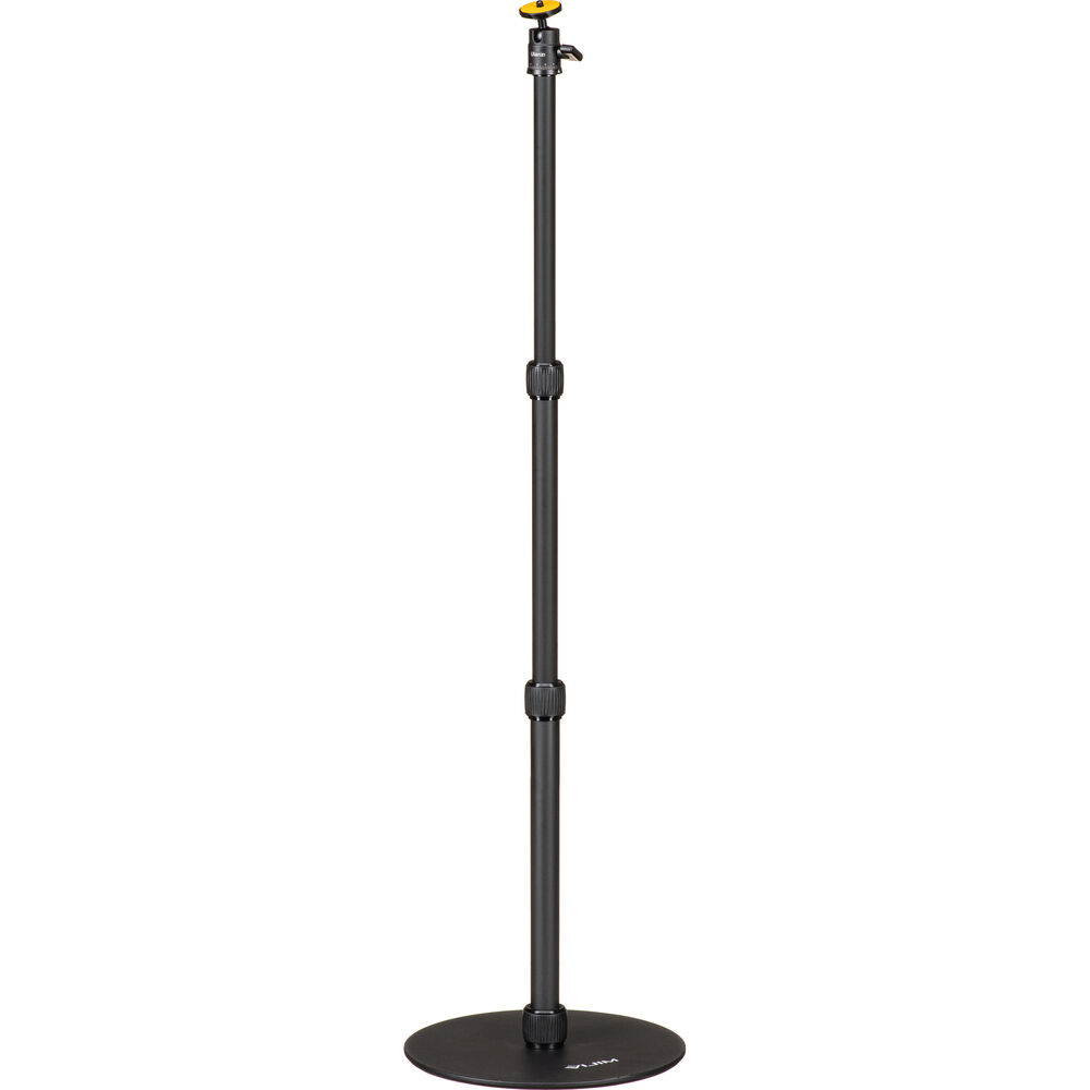 Ulanzi. Подставка подходит для использования на столе и на полу, имеет широкое и тяжелое круглое железное основание. Круглое основание диаметром 9,64 дюйма (23,7 см) весом 2,2 кг (1,2 кг) покрыто защитной силиконовой накладкой, препятствующей скольжению. Основная алюминиевая телескопическая штанга имеет три секции с поворотным замком, что позволяет увеличить ее высоту от 14,17 до 31,49 дюйма (31,49 см). В комплект входят шаровая головка, адаптеры для телефона и GoPro, позволяющие использовать LS09 с широким спектром камер.