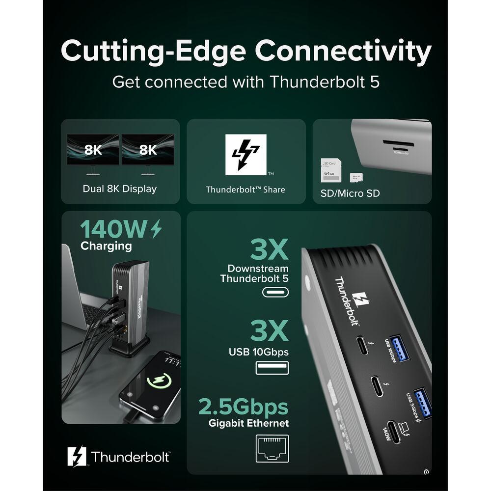 - Подключаемая док-станция Thunderbolt 5 11 в 1 с мощностью питания 140 Вт