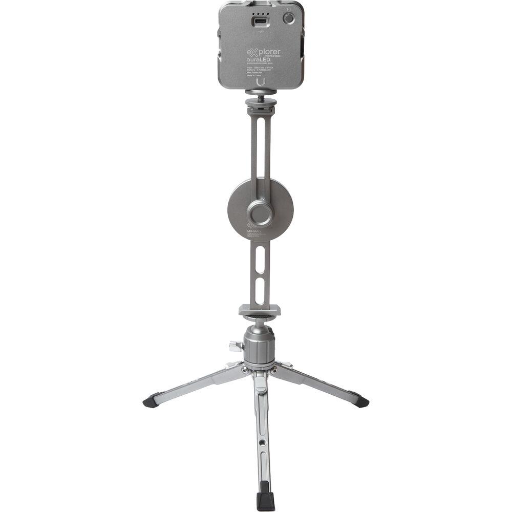 Explorer Photo & Video. Этот комплект содержит все необходимое для быстрой настройки смартфона, совместимого с MagSafe, для записи видео. Закрепите телефон на магнитном креплении, установите и отрегулируйте светодиодную подсветку AuraLED на встроенном кронштейне для аксессуаров, а затем установите все это на настольный штатив из авиационного алюминия. Штатив имеет регулировку высоты в двух положениях и крепление 1/4"-20 на каждой ножке для дополнительных аксессуаров при необходимости.