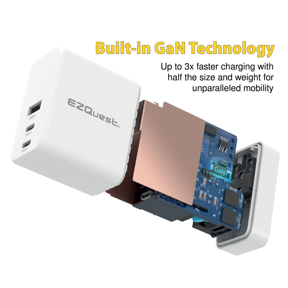- Сетевое зарядное устройство EZQuest UltimatePower 90 Вт с тремя портами GaN USB Type-C и питанием